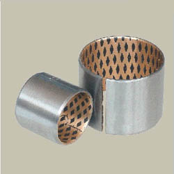 Der Aufbau der Gleitlager besteht aus einer Tragschicht aus Stahl mit einer Gleitschicht aus Sintermetall. Die geprägten Schmiertaschen sind wahlweise mit einem Schmiermittel auf Graphitbasis ausgestattet oder dienen als Depot für Fettschmierung. Die Schmiertaschen gewährleisten eine Langfristige Bevorratung an Schmiermittel und deren gleichmäßige Verteilung. Die Lagerwerkstoffe zeichnen sich neben hoher Tragfähigkeit und geringen Reibwerten durch Unempfindlichkeit gegen chemische Einflüsse, ein großes Temperaturspektrum und gute Notlaufeigenschaften aus. Einsatzgebiete sind zum Beispiel Lagerungen für Hydraulikzylinder, Handhabungsgeräte und Baumaschinen, Lenkgetrieben und Radaufhängung. Die Gleitlager können in Standard- oder Sonderformen geliefert werden. | |||||||||||||||||||||||||||||